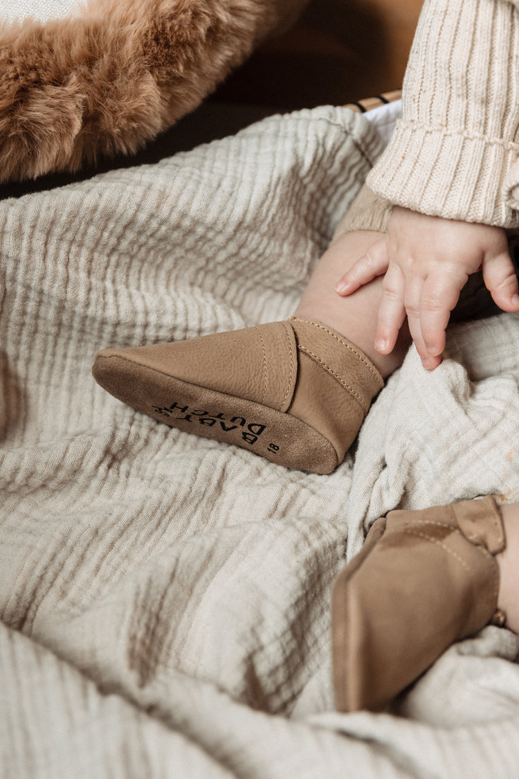 De babyslofjes hebben in alle maatjes een suède antislip zooltje.